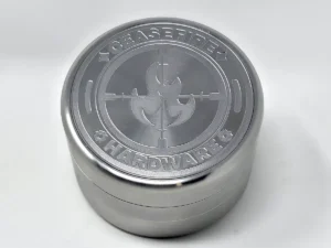 The Cyber Grinder / CeaseFire Hardware grinder is made from 303 Stainless Steel.