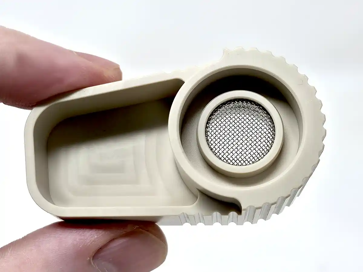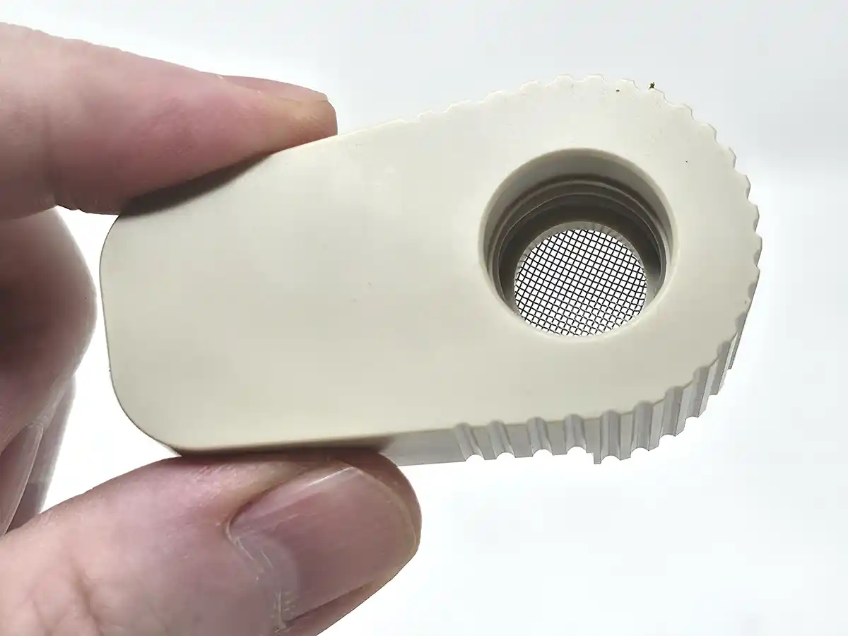 The bow's contents don't always stick to the screen like this, but it's common for the herb to stick if the cooling unit is removed after only one hit. Over time, I've learned that a few taps on the top of the cooling unit will help unstick the herb from the screen.