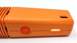 This vape uses an app to customize the preset temperatures. There is no display screen on the Veazy. It features a single button that serves as both a power switch and a temperature setting selector, allowing you to turn the device on and off, as well as cycle through its three customizable temperature settings.